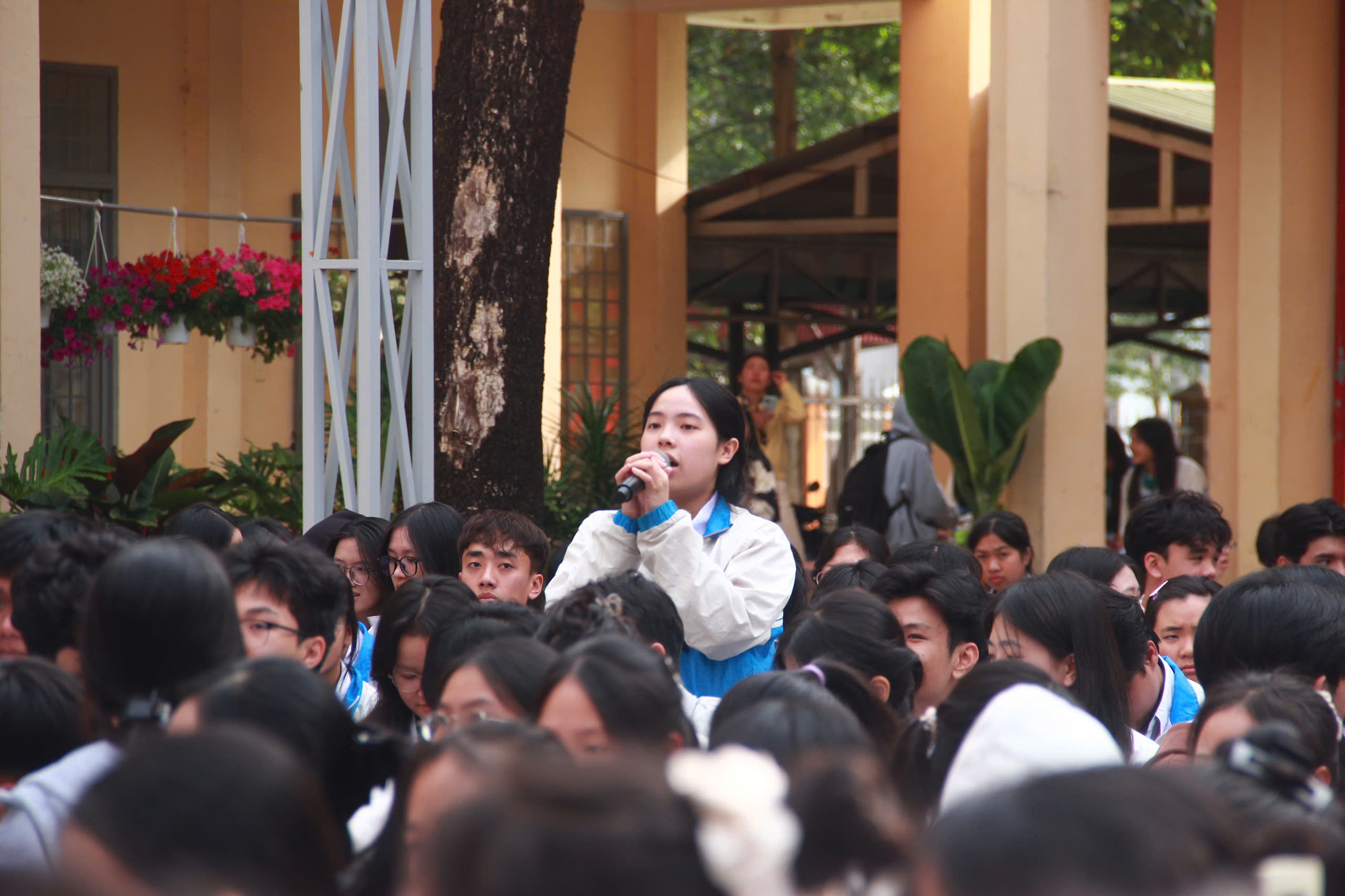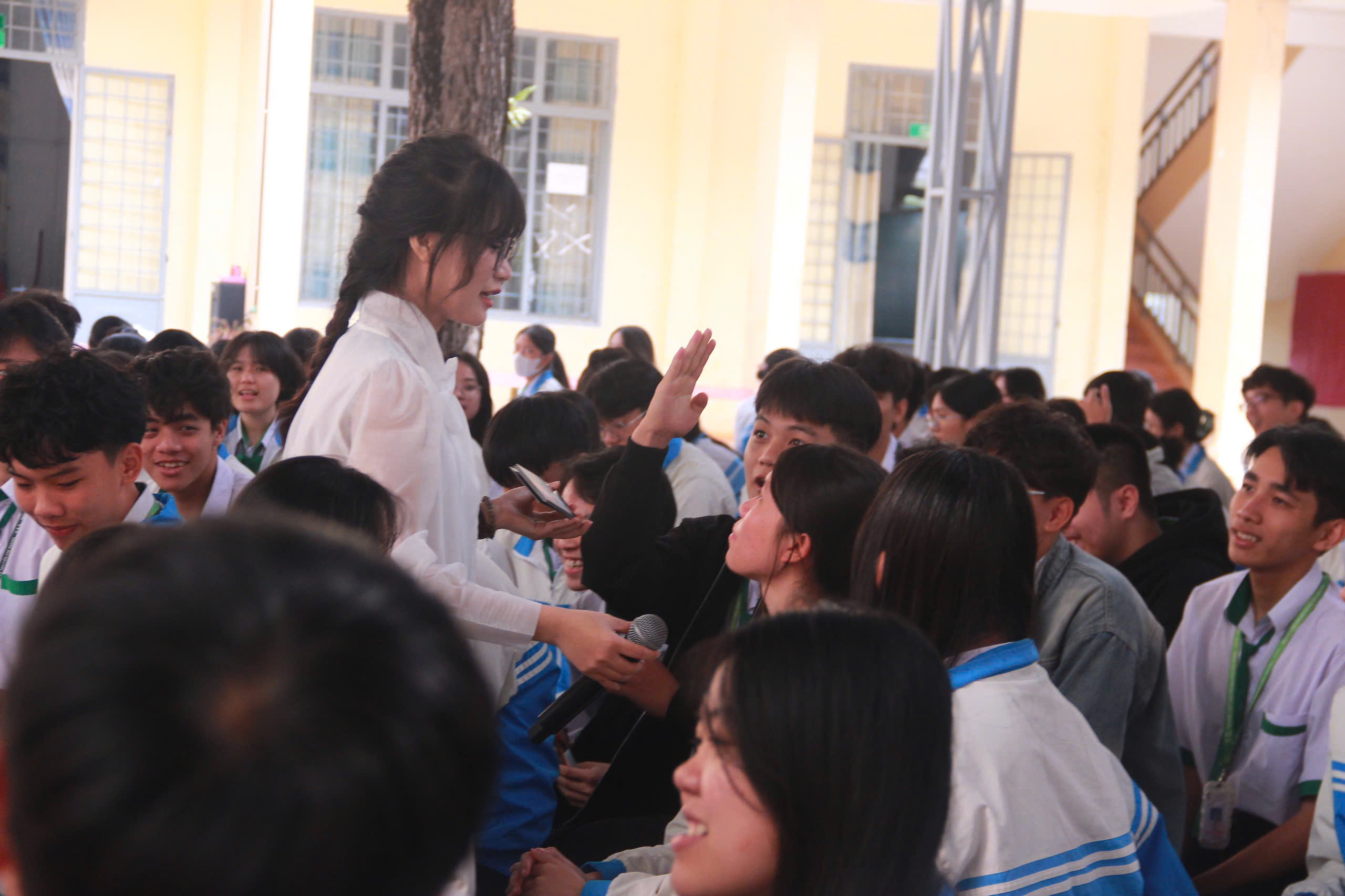 Không khí trao đổi diễn ra sôi nổi, cởi mở, thể hiện tinh thần chủ động và sự quan tâm nghiêm túc của học sinh đối với tương lai nghề nghiệp.