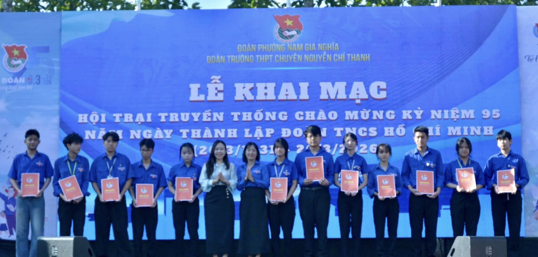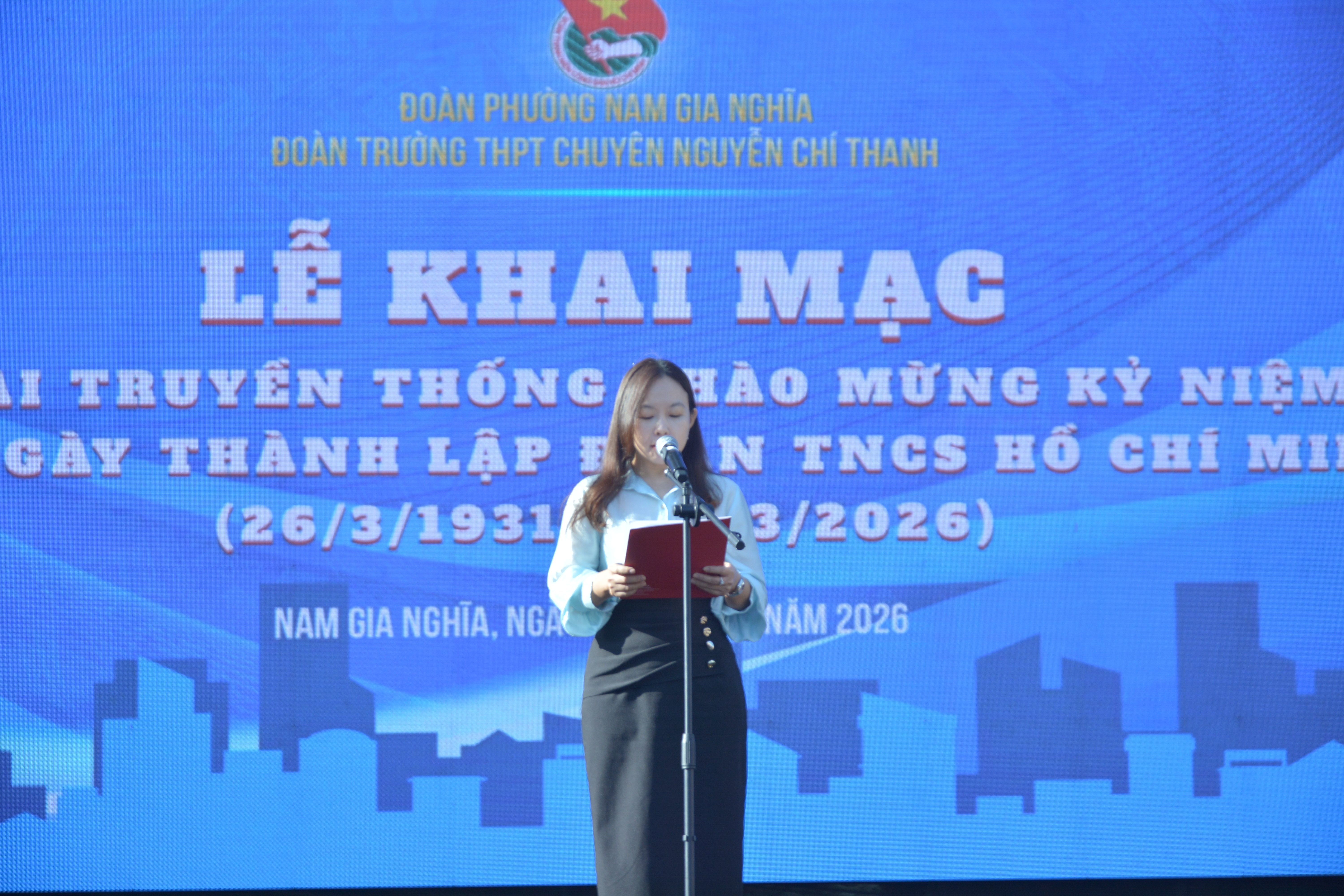 Lễ Khai mạc Hội trại diễn ra vào sáng ngày 26/3 với sự tham dự của các đồng chí Đại biểu đại diện cho Chi bộ nhà trường, Đoàn phường Nam Gia Nghĩa, Hội Cha Mẹ Học sinh nhà trường và hơn 1000 đoàn viên thanh niên là học sinh của các chi đoàn.