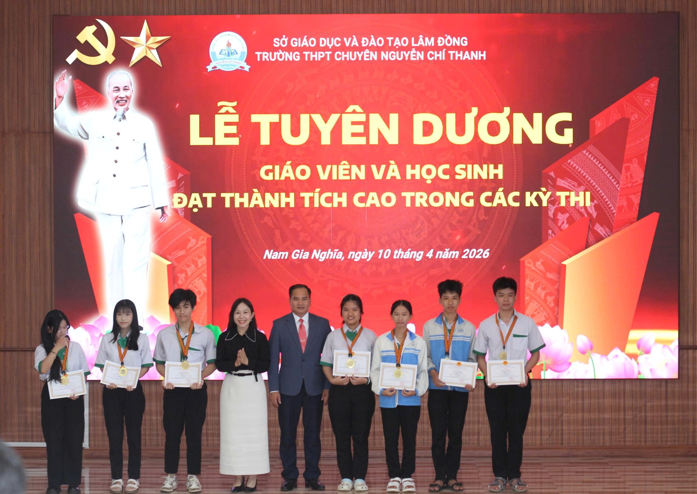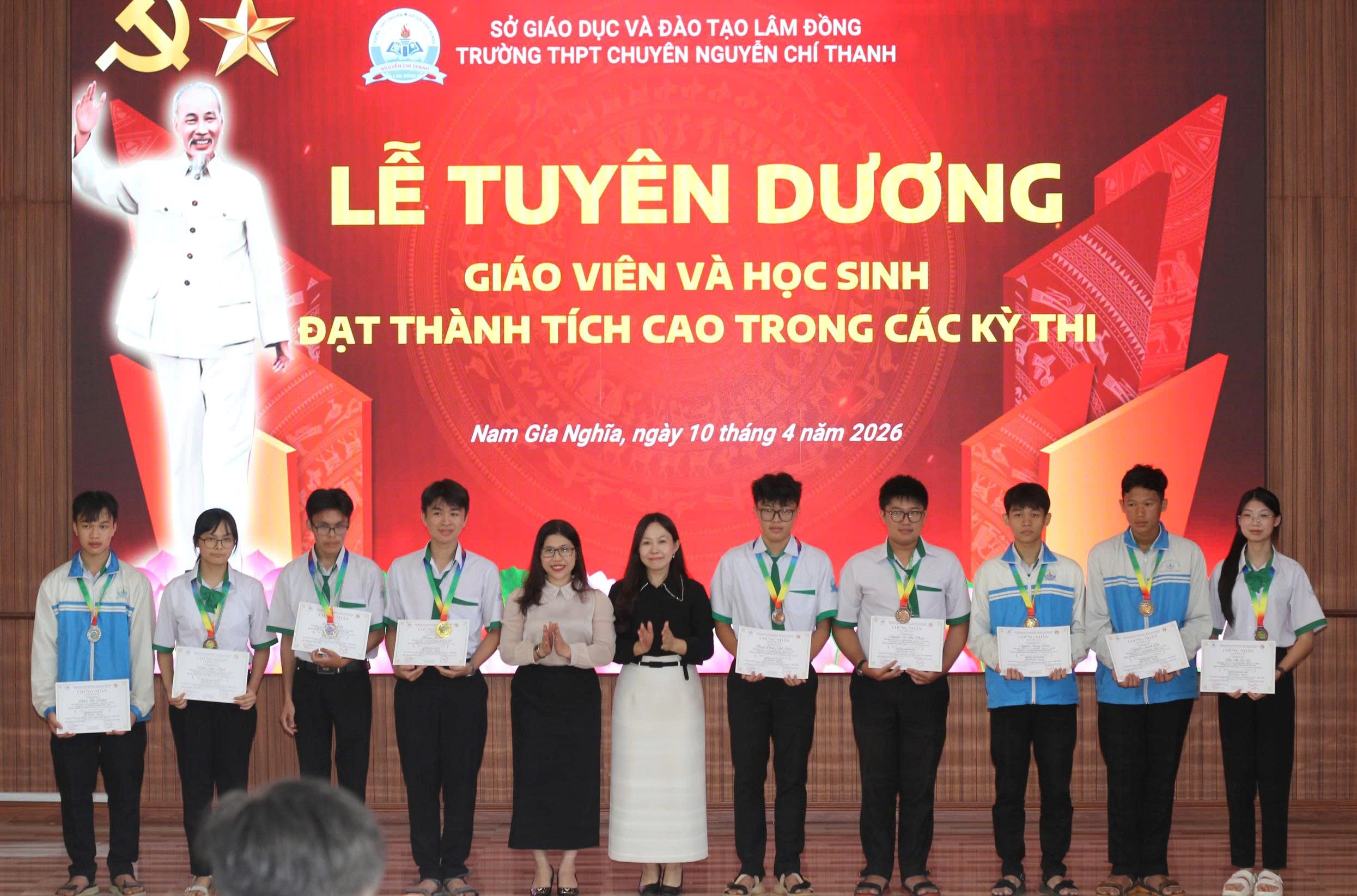 Trong không khí thi đua sôi nổi lập thành tích chào mừng các ngày lễ lớn, Trường THPT Chuyên Nguyễn Chí Thanh đã long trọng tổ chức Lễ tuyên dương giáo viên và học sinh đạt thành tích cao trong các kỳ thi. Đây là dịp đặc biệt nhằm ghi nhận, tôn vinh những nỗ lực bền bỉ, tinh thần vượt khó và khát vọng chinh phục tri thức của thầy và trò nhà trường.