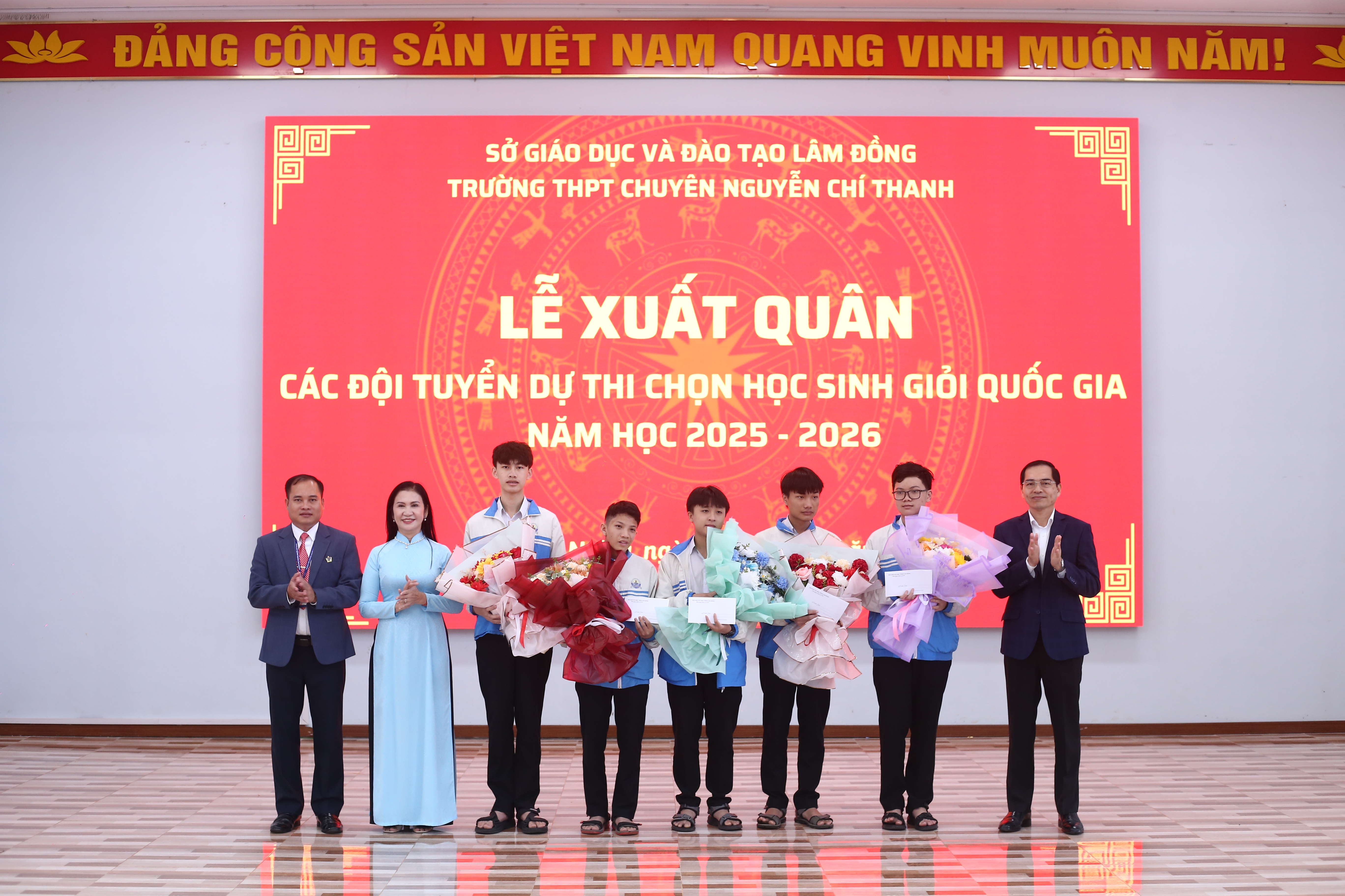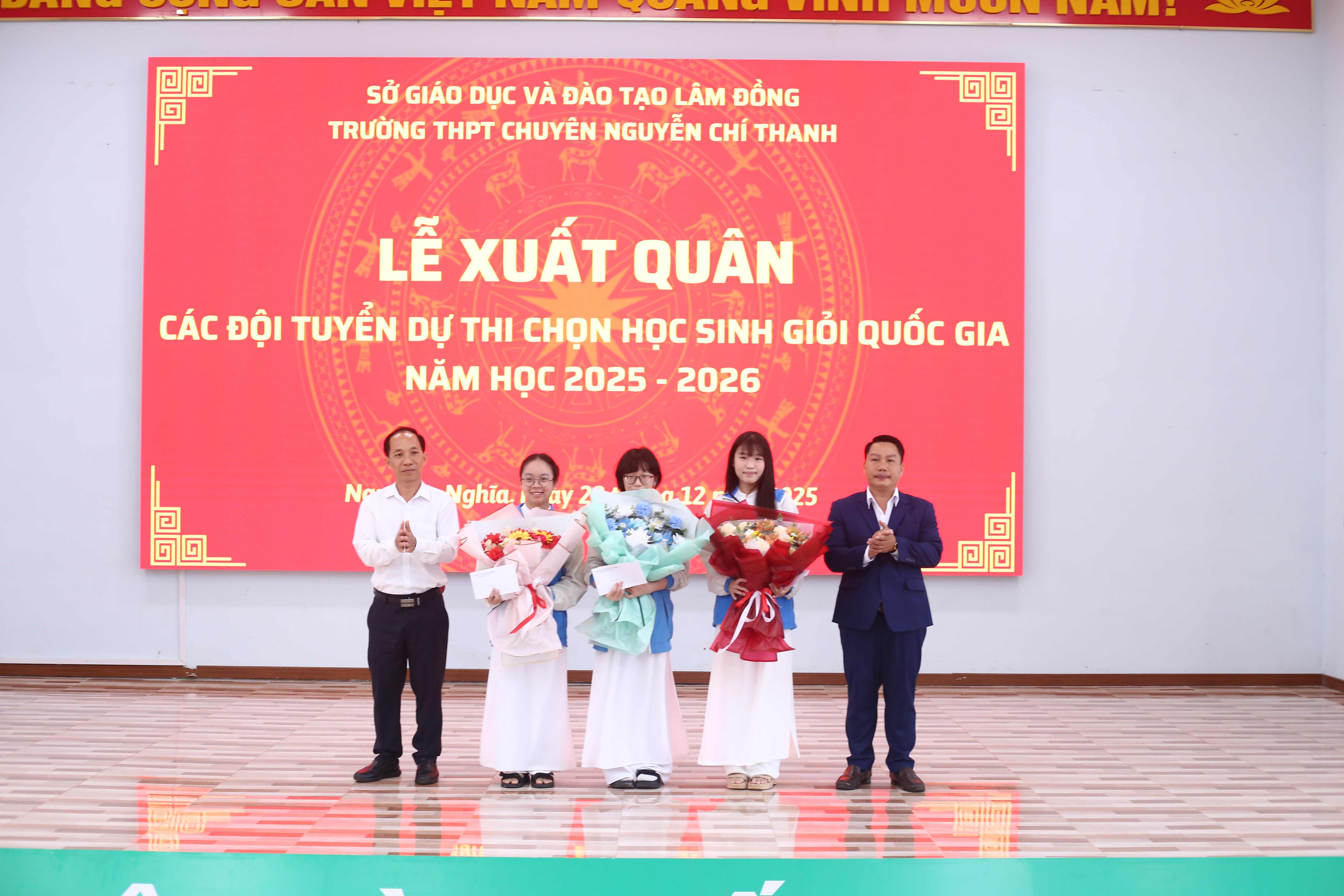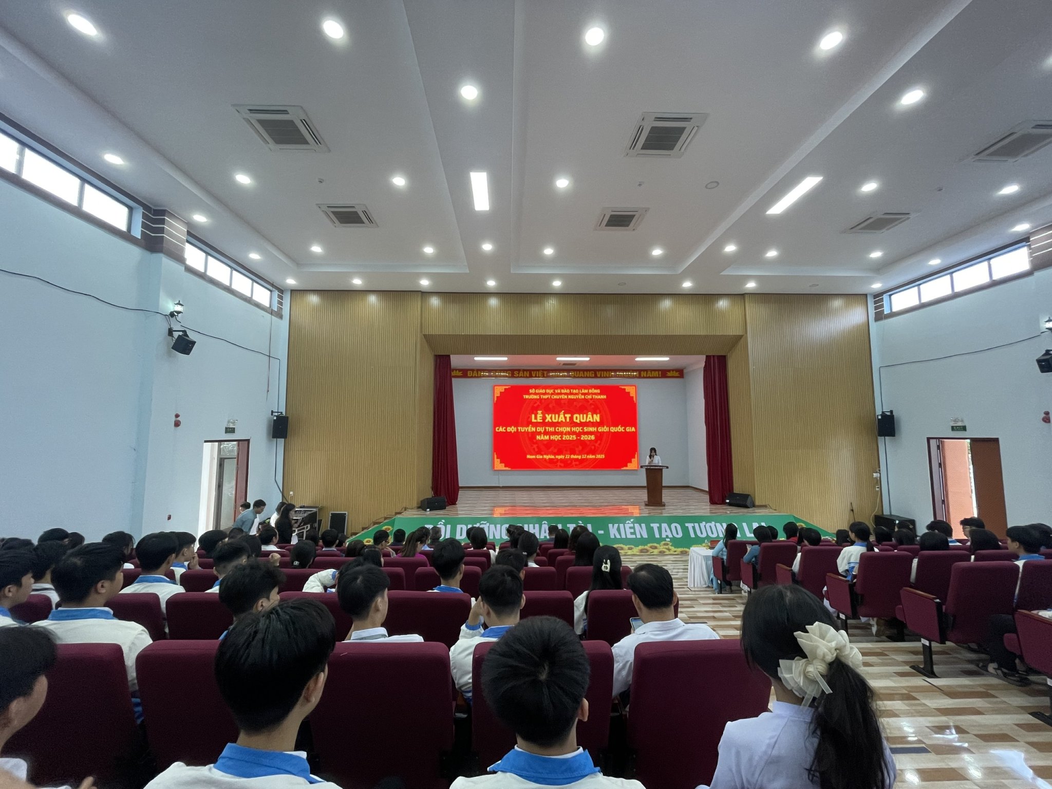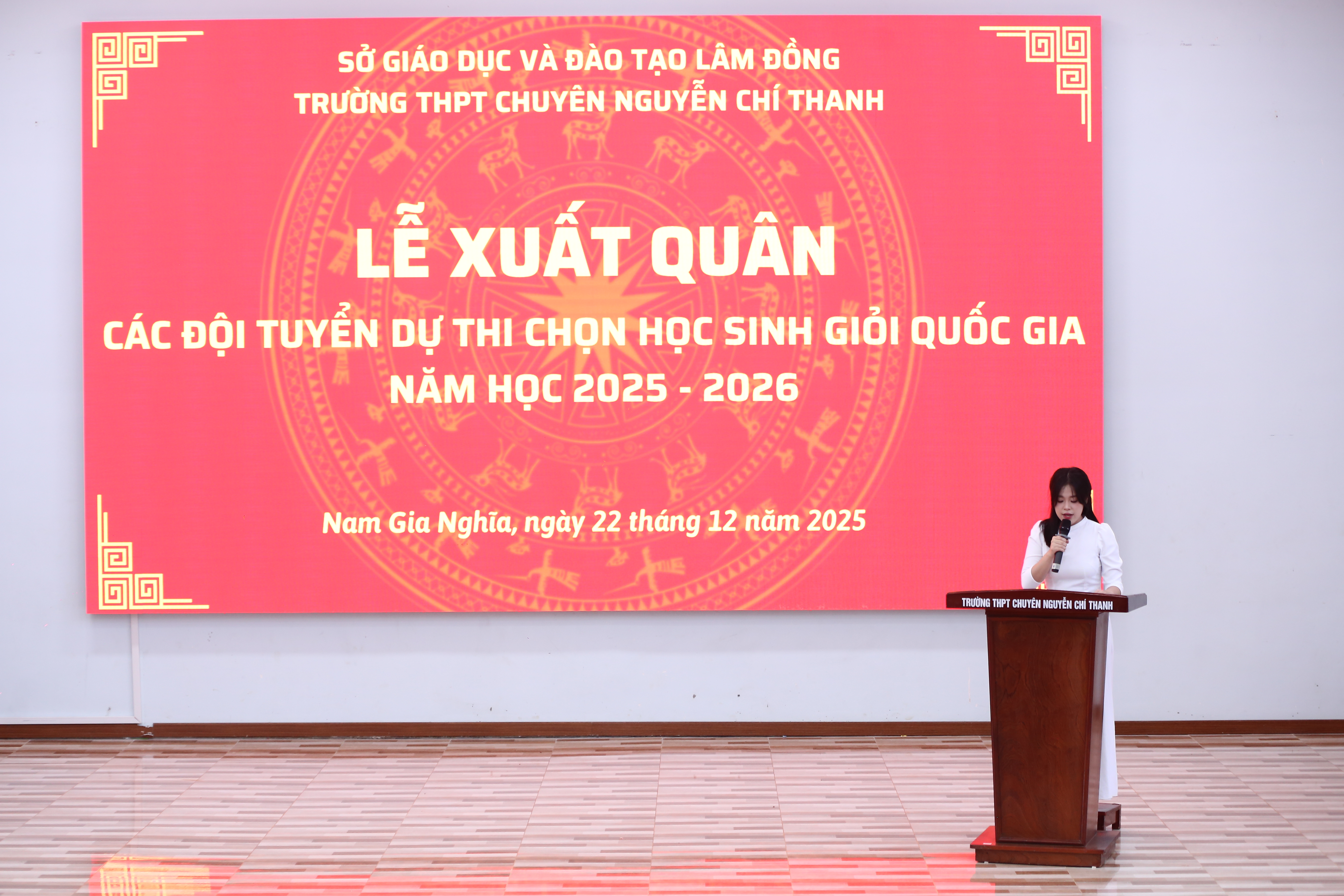 Với mục đích bày tỏ lòng tri ân đến sự quan tâm của các tổ chức ban ngành, sự đồng hành của quý bậc phụ huynh, và sự nỗ lực, tâm huyết của quý thầy cô giáo. Đặc biệt, với mong muốn động viên, khuyến khuyến và truyền lửa cho chiến binh sắp sửa bước vào cuộc chiến tri thức, sáng ngày 22/12/2025 trường THPT chuyên Nguyễn Chí Thanh long trọng tổ chức “Lễ xuất quân các đội tuyển thi chọn học sinh giỏi quốc gia năm học 2025 – 2026”.