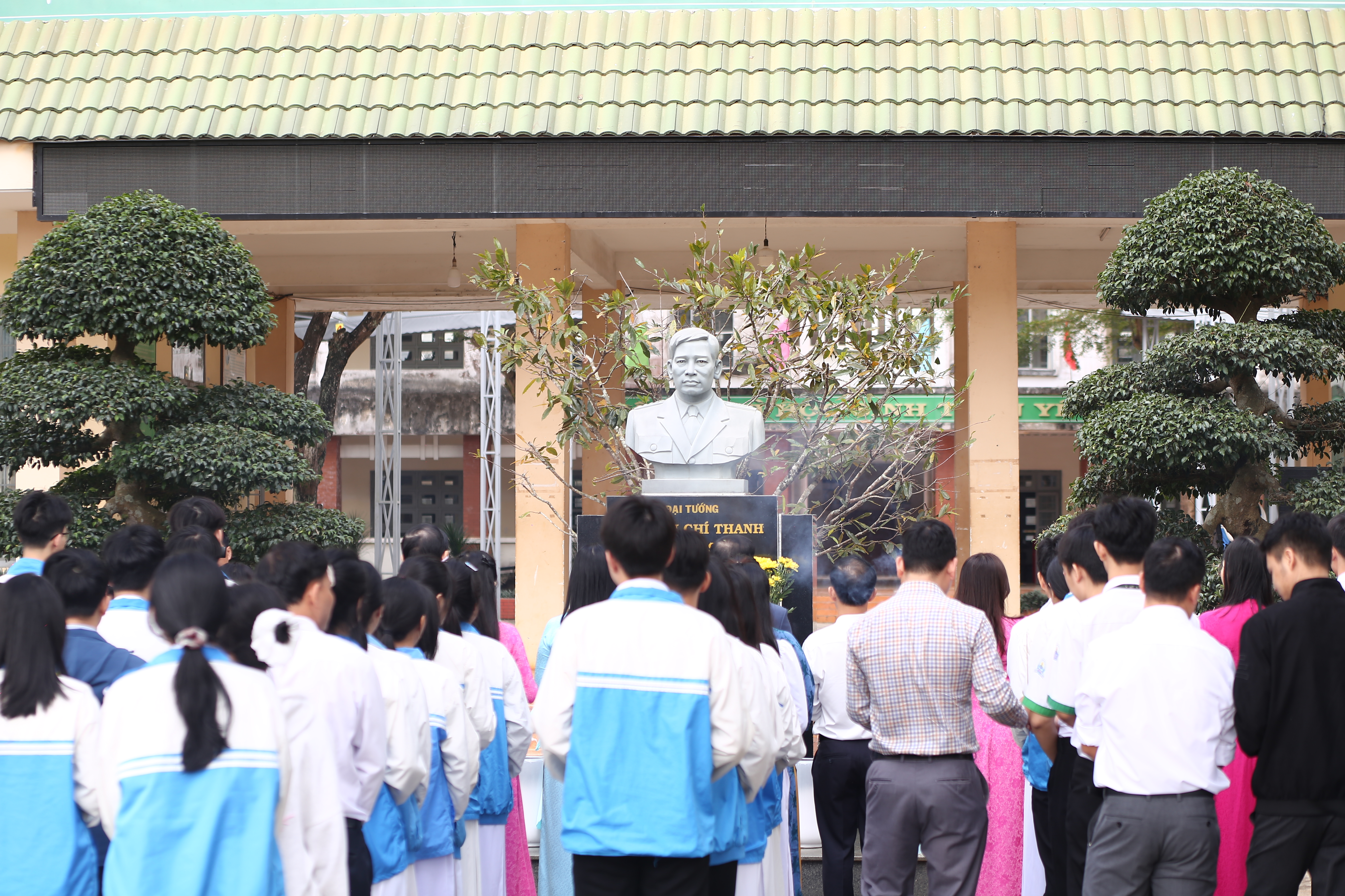 Sau buổi Lễ, đại biểu, giáo viên nhà trường cùng toàn thể các em học sinh đã dâng hương trước tượng đài Đại tướng Nguyễn Chí Thanh. Những trang sử vàng chói lọi của dân tộc được viết nên bằng mồ hôi, trí tuệ và cả máu đào của bao thế hệ đi trước. Chính sự hi sinh cao cả ấy đã hun đúc nên khát vọng vươn lên, đã thắp sáng niềm tin và lý tưởng sống cho thế hệ trẻ hôm nay.Trong thời đại mới, tri thức chính là sức mạnh, học tập và rèn luyện là con đường bền vững để phụng sự Tổ quốc. Kỳ thi học sinh giỏi không chỉ là thước đo năng lực, mà còn là nơi thử thách bản lĩnh, ý chí và trách nhiệm của tuổi trẻ đối với quê hương, đất nước.