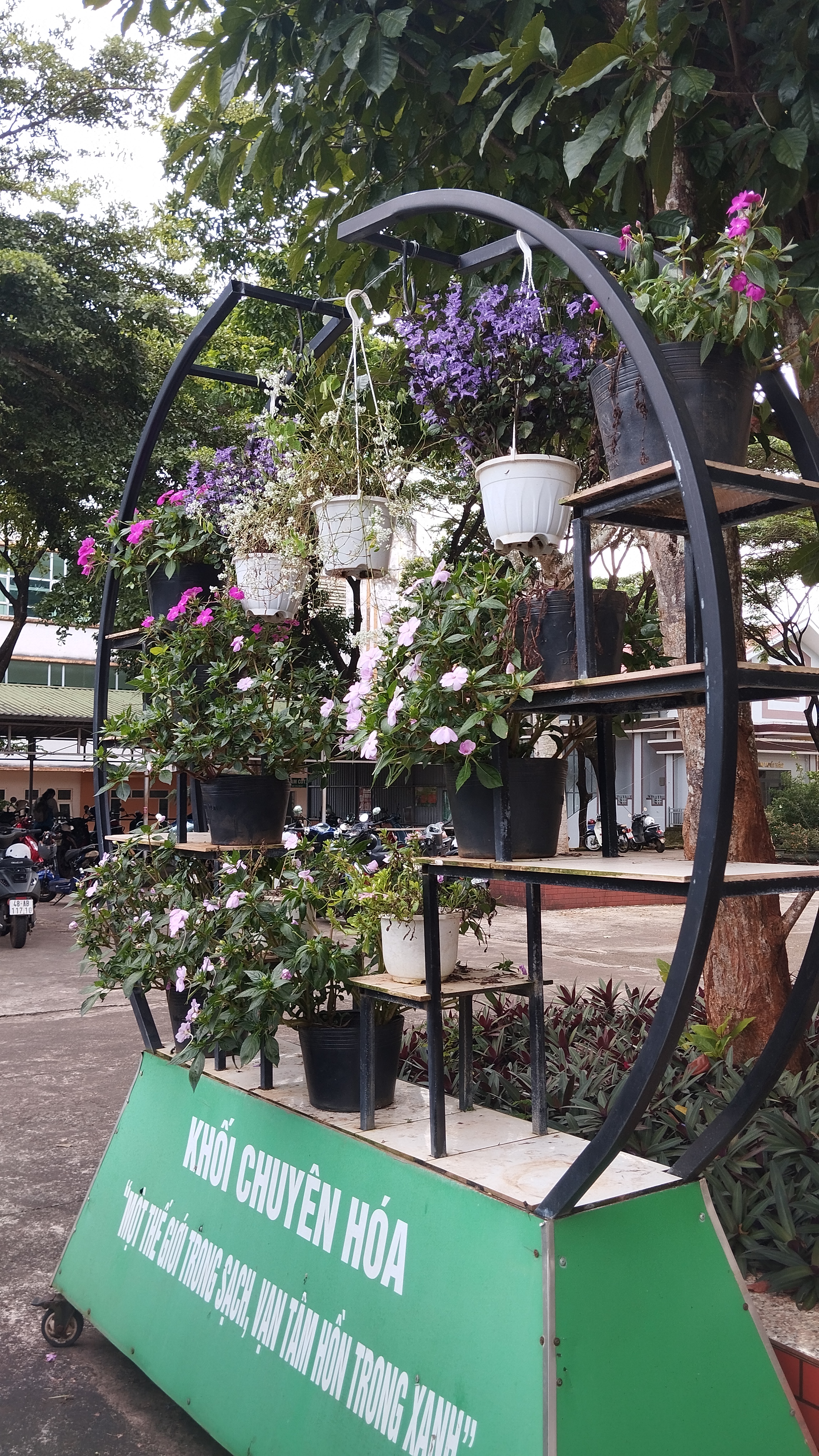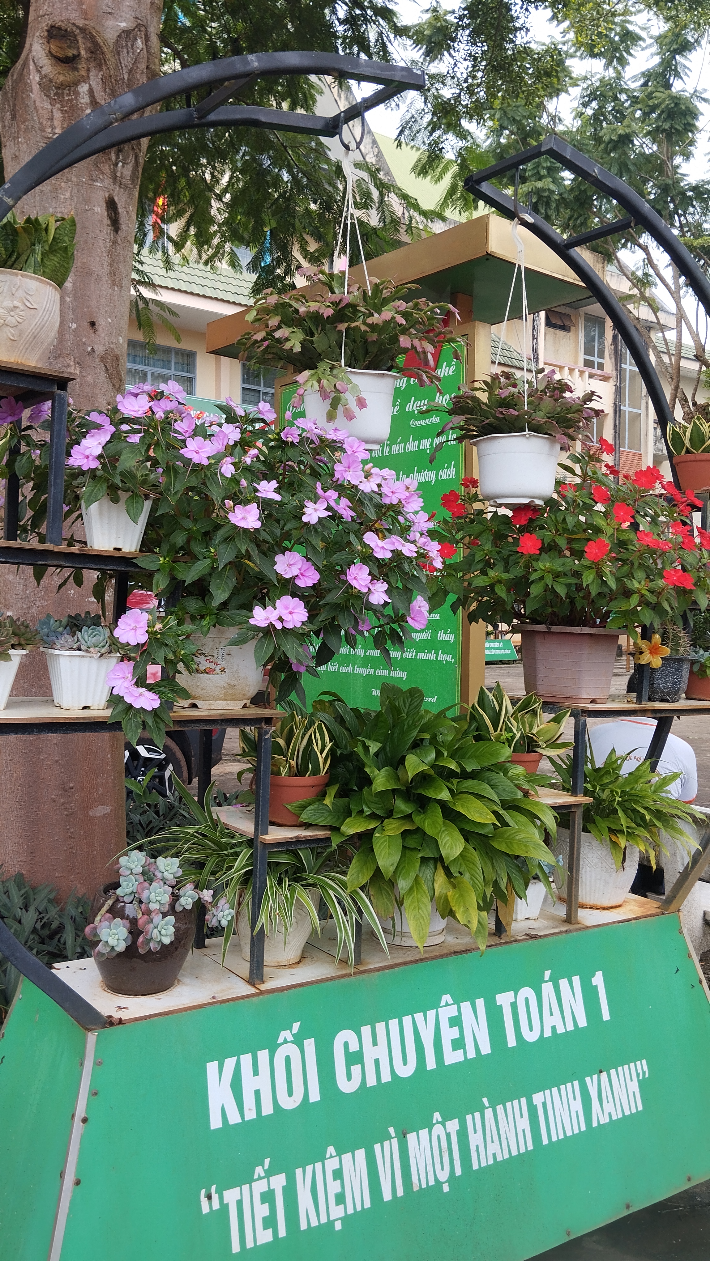 Cây xanh và hoa giúp không gian trường học trở nên trong lành, tươi mát và đầy sức sống. Những hàng cây rợp bóng mát bên sân trường, những bồn hoa khoe sắc trước lớp học không chỉ làm đẹp cảnh quan mà còn góp phần giảm bụi, điều hòa không khí và tạo cảm giác thoải mái cho học sinh, giáo viên trong mỗi giờ học, giờ ra chơi.